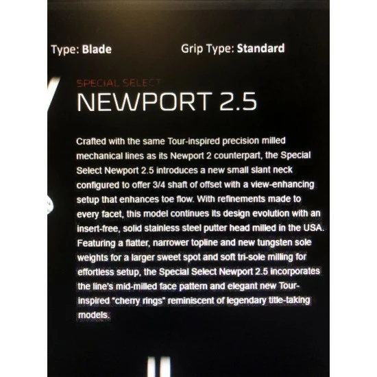 SpecificationsCategoryBrandModel2020 Special Select Newport 2.5ConditionHandPutter TypeGenderLengthQuantity Available1 AvailableDescriptionBrand new. Never used. Head cover included